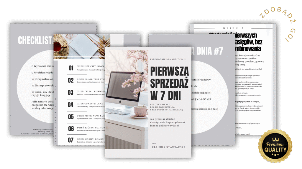 Pierwsza Sprzedaż w 7 Dni - Praktyczny Przewodnik dla startujących ze sprzedażą produktów cyfrowych/usług